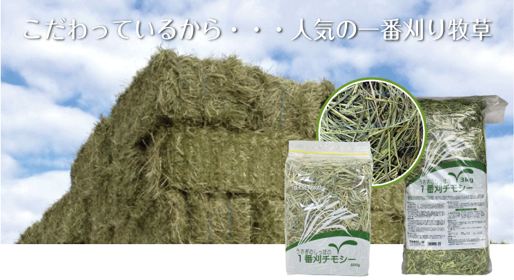 うさちゃんにとって、牧草はとても大切な物です。うさぎのしっぽでは、選りすぐりの牧草の鮮度を考えて扱っています。どうぞ、貴方のうさちゃんに合った牧草を選んでみて下さい。